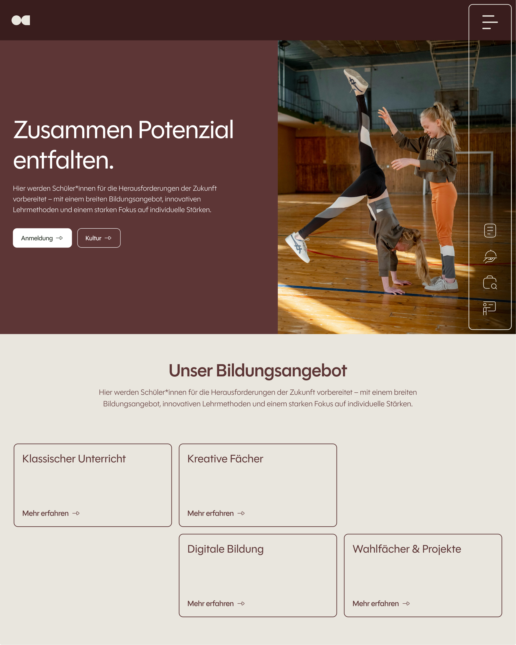 Wie Ihre Schulwebsite aussieht wird dadurch bestimmt, wie Ihre Schule auftreten und aussehen möchte. Wie sie sich sieht – und wie sie gesehen werden möchte. Daher sind Gestaltungsmöglichkeiten in Farbe, Typografie und Layout keinerlei Grenzen gesetzt. Ihre Schule ist einzigartig – und so muss die neue Website sein.